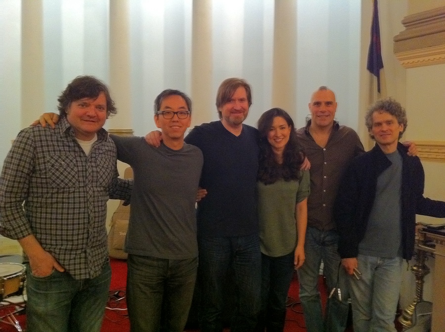 Post soundcheck photo (Jon Cowherd, Paul Kim, Chris Miles, Nina Negri, Chris DeRosa, and David Mansfield)