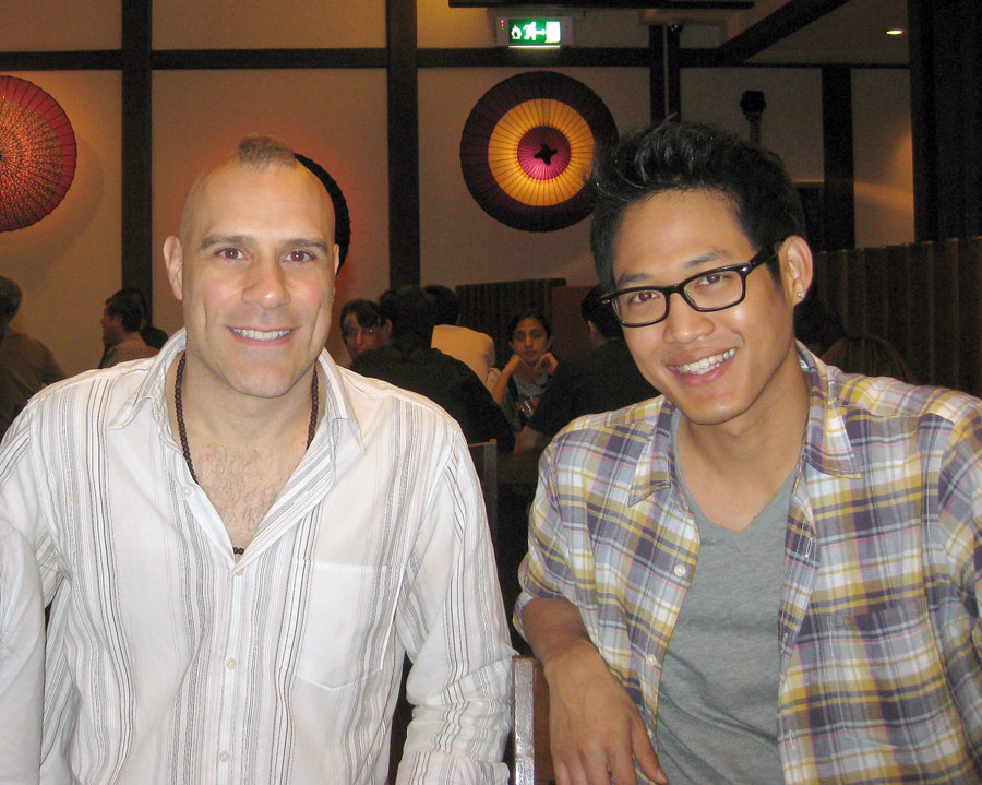 Chris hanging out after dinner with Thai Pop Star Two Popetorn